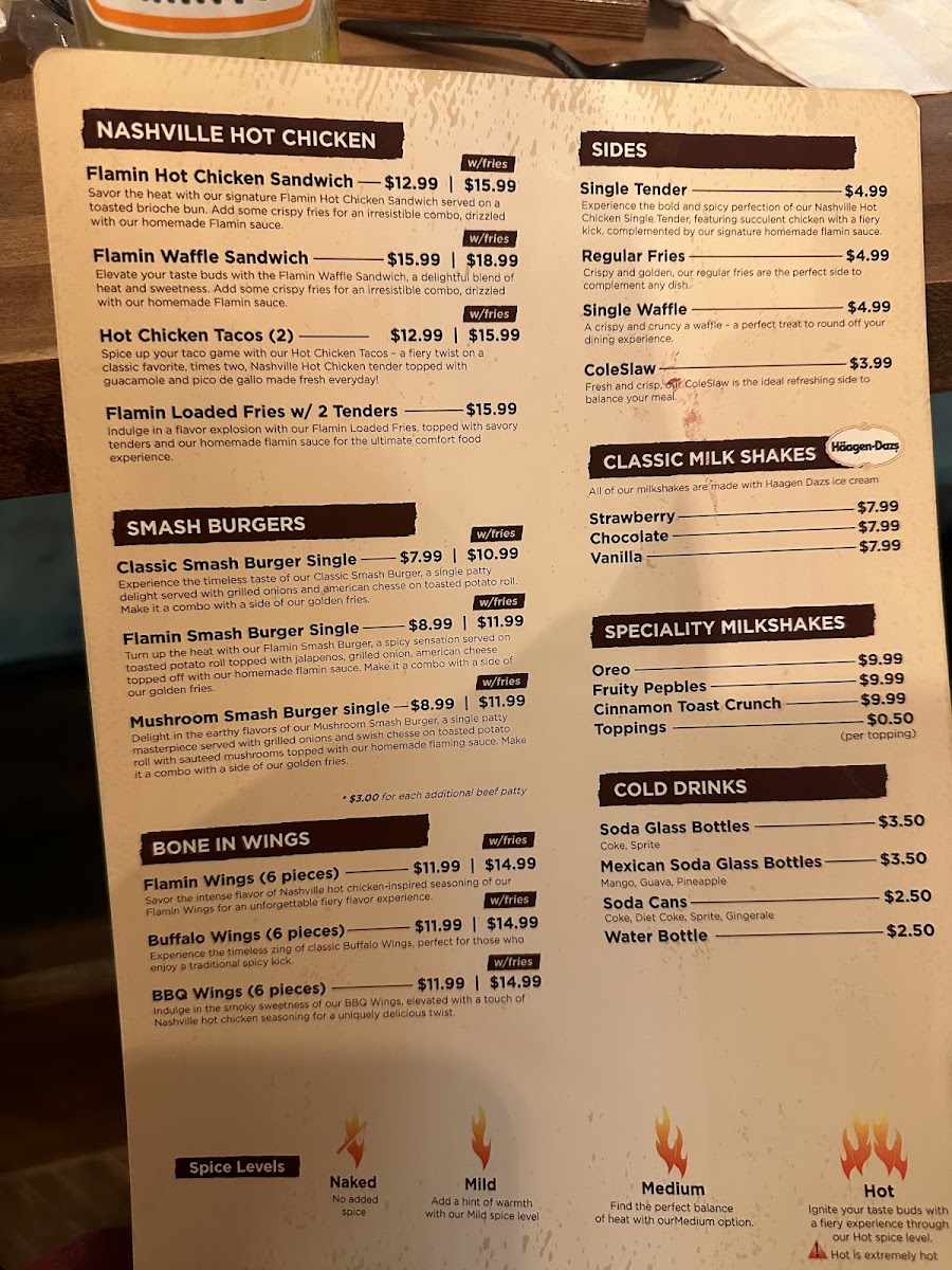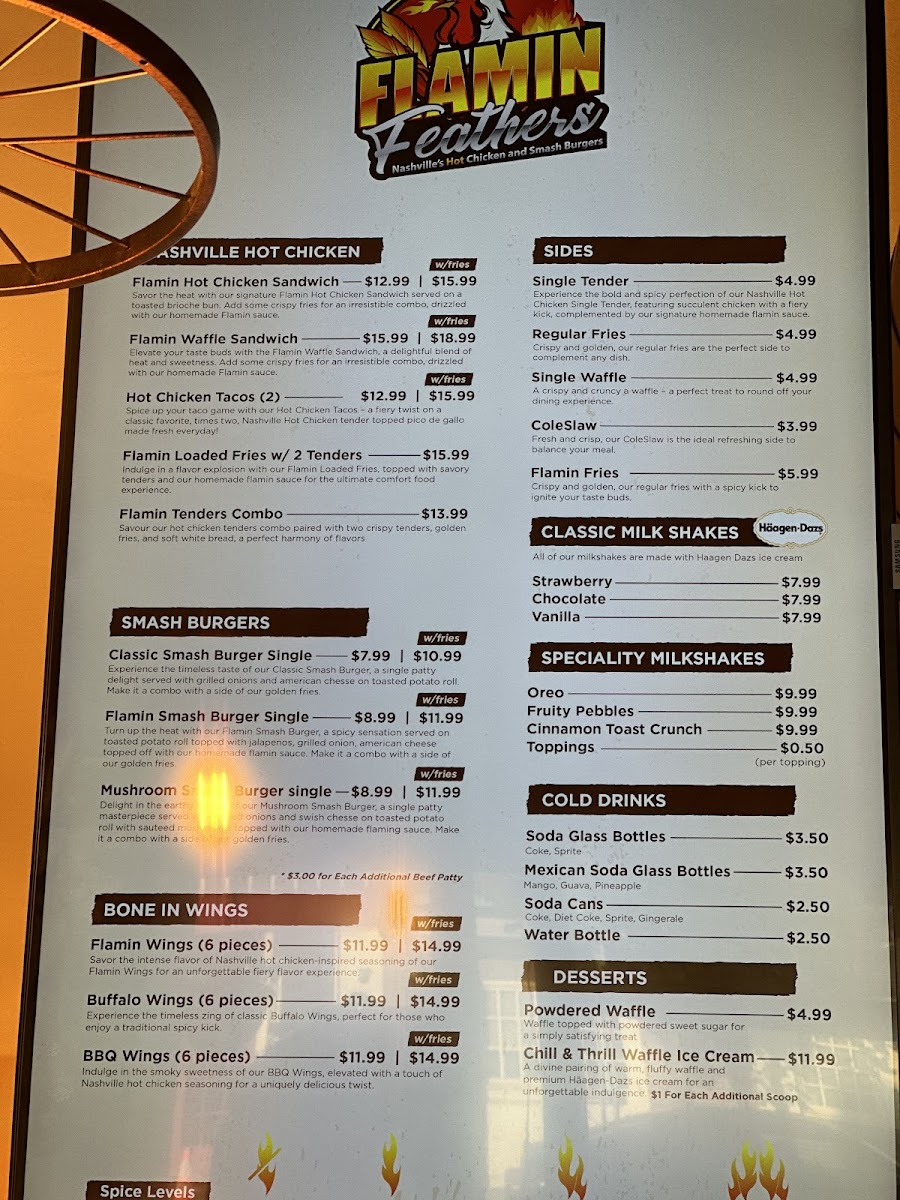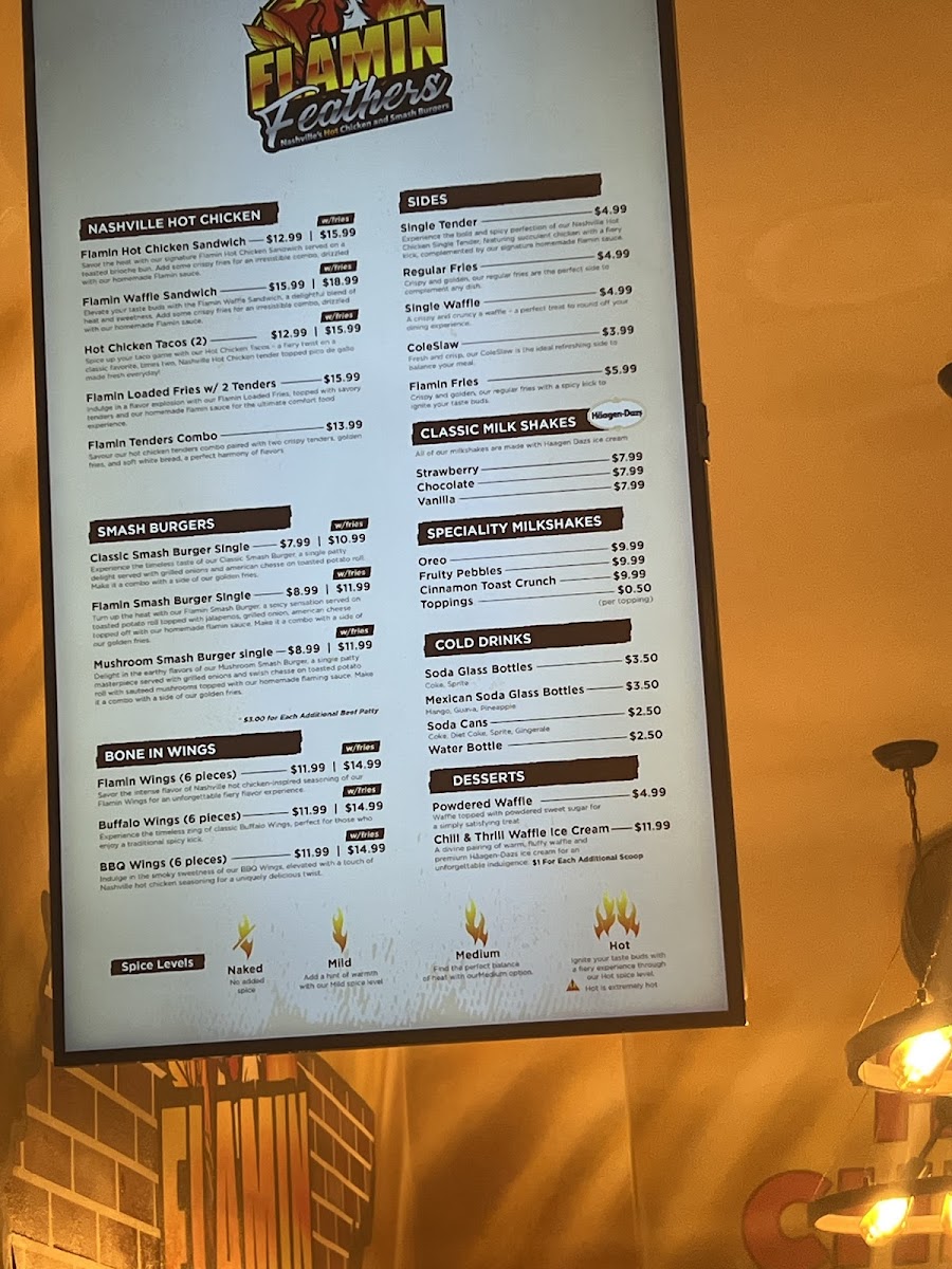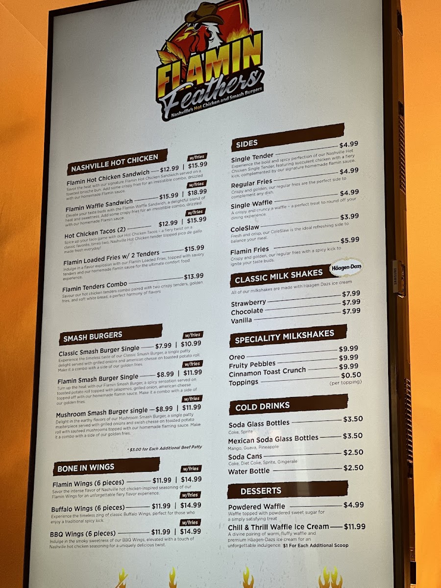 Finish your meal with the Chill and Thrill Waffle Ice Cream, featuring a golden Belgian waffle topped with Haagen-Dazs ice cream, chocolate syrup, and sprinkles for US$11.99. Diners rave about the inviting atmosphere and exceptional service, making Flamin Feathers a must-visit spot for delicious, casual dining. With enticing deals and a commitment to quality, this is more than just a place to eat; it’s a destination for satisfying cravings and creating memories.